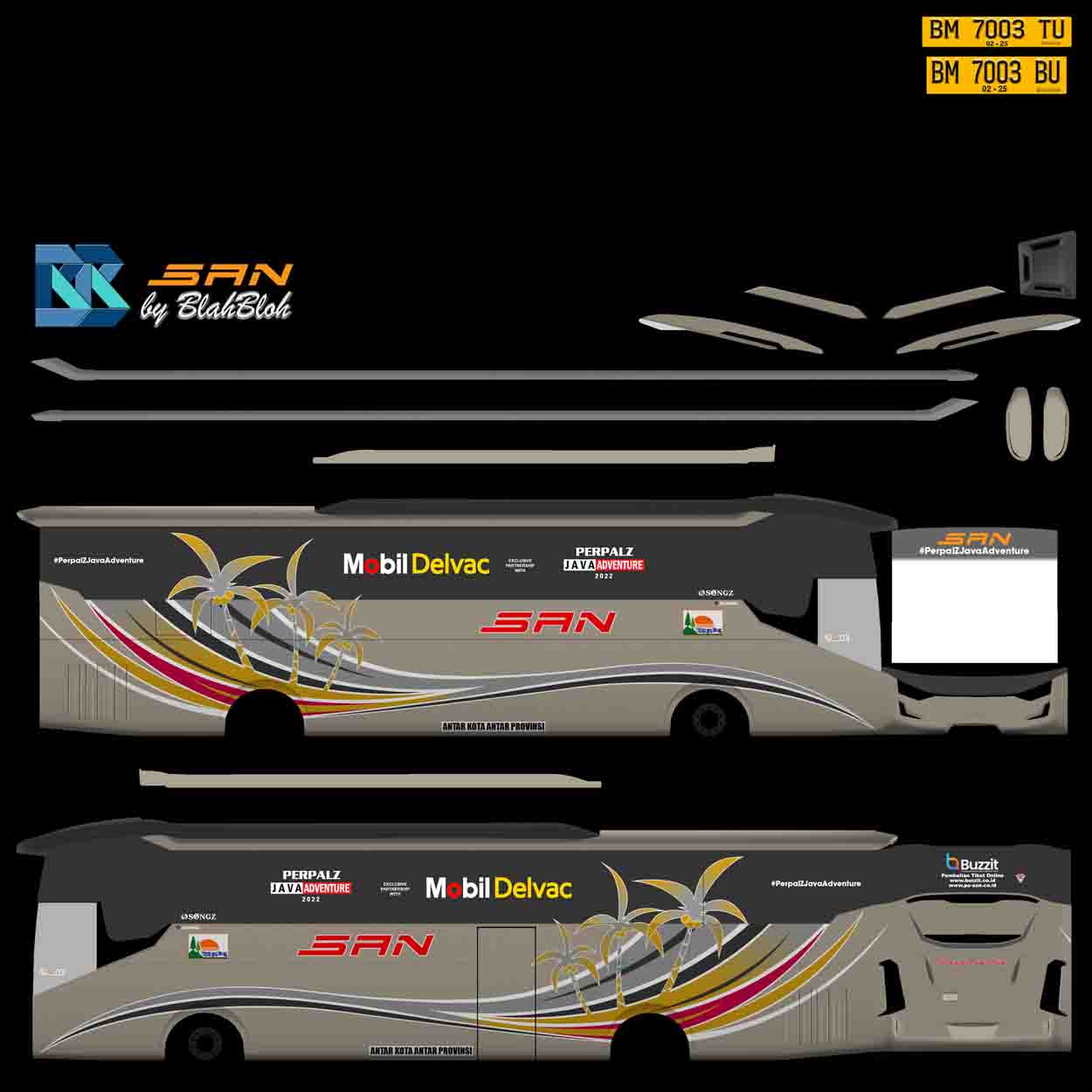 Bagi para penggemar game Bus Simulator Indonesia (BUSSID), nama PO SAN tentu sudah sangat familiar. Bus asal Sumatera Selatan ini terkenal dengan armadanya yang gagah, nyaman, dan memiliki desain khas berwarna biru dengan grafis elegan.